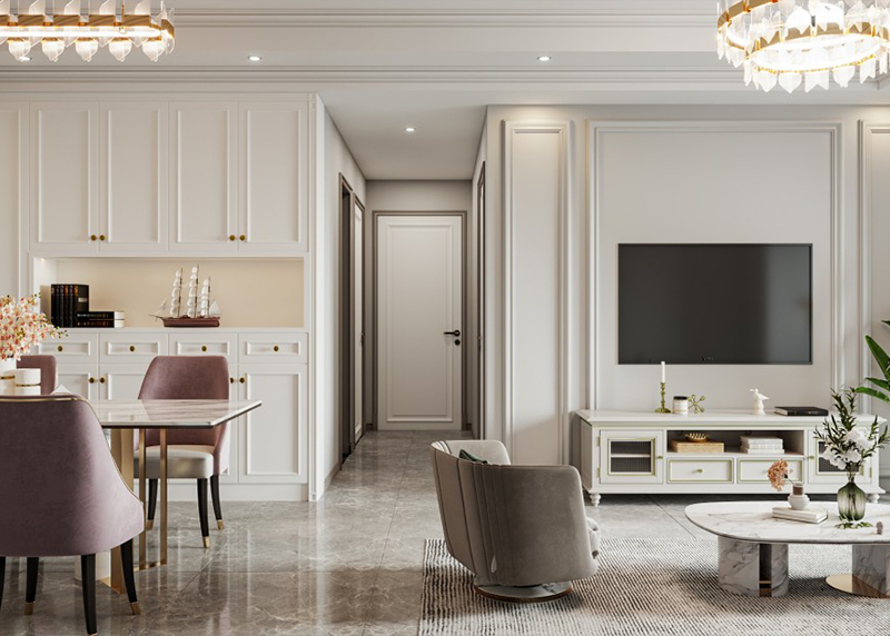 4、純粹就是為了美觀好看,歐式、美式、法式、為了配合風(fēng)格統(tǒng)一,踢腳線運(yùn)用是自然而然的事情了。